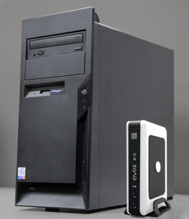 Слева – ПК, справа – тонкий клиент.