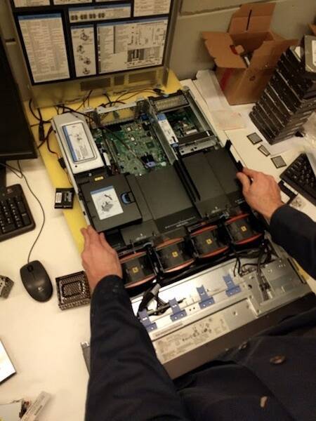 Все новоприбывшие серверы проходят обязательный цикл тестирования и очистки. Кроме того, восстанавливаются серьезные физические дефекты, вроде погнутых монтажных «ушей».
