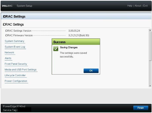 10. После этого настройки сети сохранятся, и настройка iDRAC на этом завершится.
