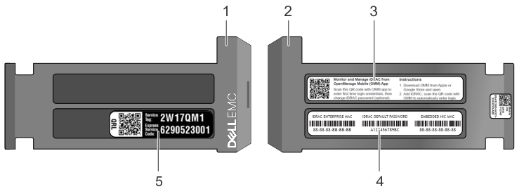 Наклейка с MAC-адресом iDRAC и защищённым паролем iDRAC.