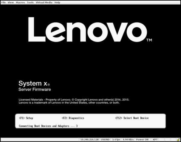 1. Для начала настройки вам нужно включить или перезагрузить сервер. При запуске вас встретит экран The System x Server Firmware;