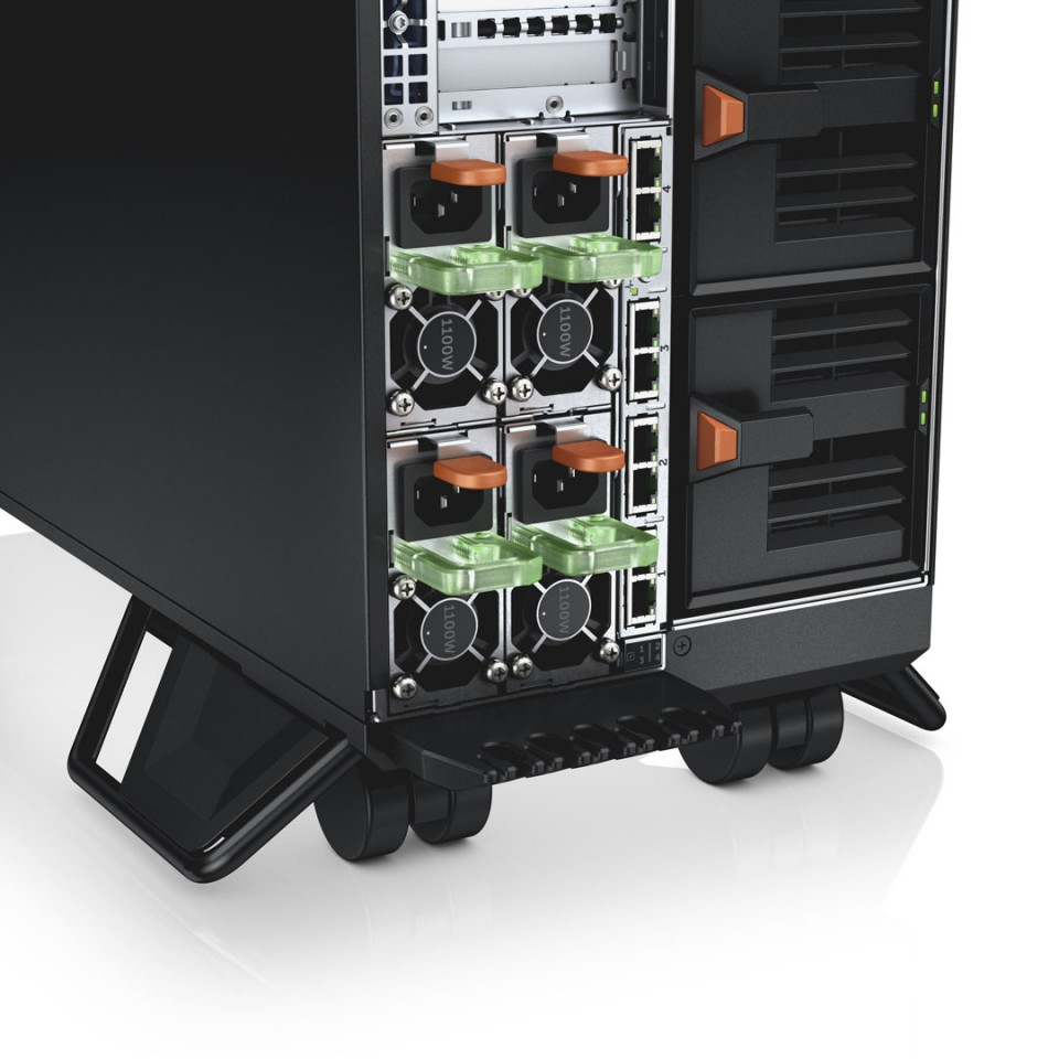 Модульное шасси Dell VRTX с четырьмя установленными блоками питания на 1100W каждый.
