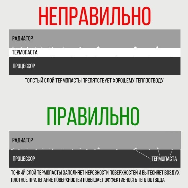Если говорить о цифрах, то слой должен быть совсем небольшой: 0,5-1 мм. Замерять линейкой не нужно, визуально поверхность процессора будет слегка видна через такой слой.