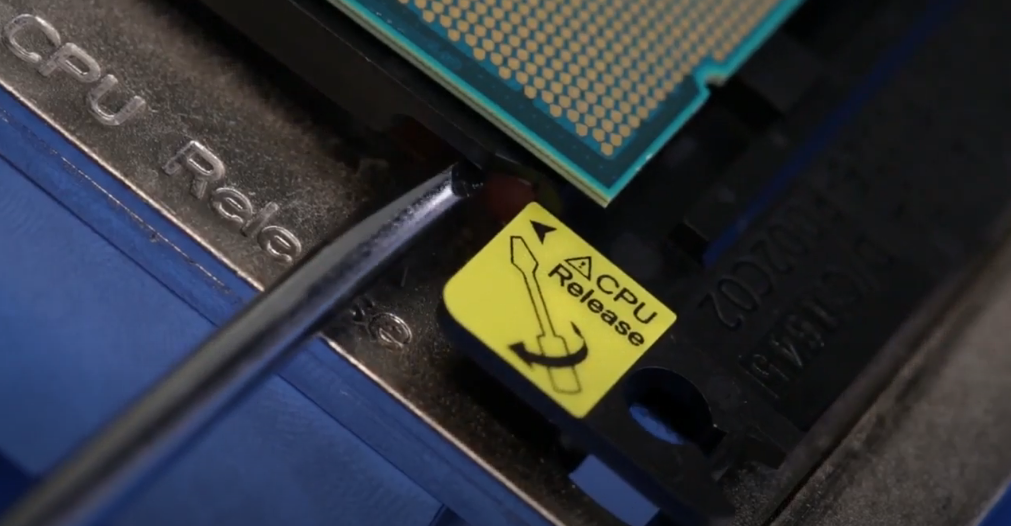 3. Аккуратно отсоединяем процессор от радиатора, повернув отвертку вдоль своей оси.