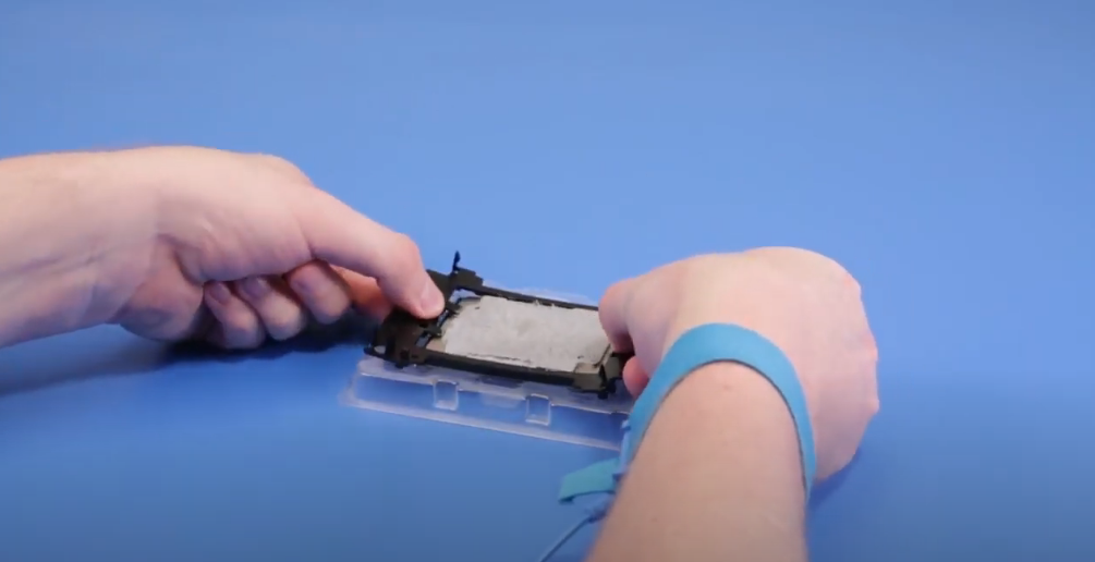 Наденьте антистатический браслет на запястье (если есть в серверной). Если браслета нет, снимите статику другим способом. Например, прикоснитесь к заземленному оборудованию.