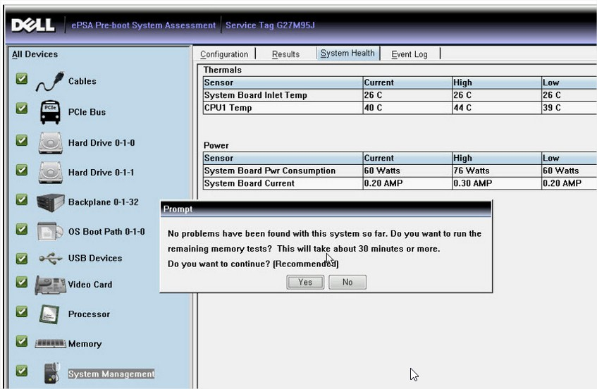 ATTENTION! Не запускайте самодиагностику в том же месте, где чистили сервер от пыли. Если воздух в помещении не фильтруется (или не успел профильтроваться), то это приведёт к попаданию пыли внутрь оборудования. В таком случае лучше тестировать сервер в серверной или ЦОДе.